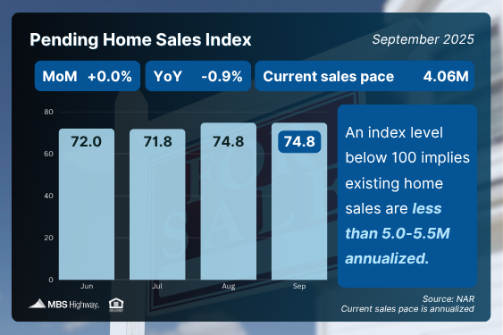 What’s the bottom line? Pending Home Sales track signed contracts on existing homes and often signal closings one to two months ahead. While higher rates later in September likely kept some buyers on the sidelines, NAR Chief Economist Lawrence Yun noted that “looking ahead, mortgage rates are trending toward three-year lows, which should further improve affordability.”