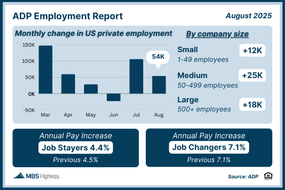After a strong rebound in July, private sector job growth cooled in August, with just 54,000 jobs added, according to ADP. That’s well below the 75,000 expected and nearly half of July’s 106,000 gain.